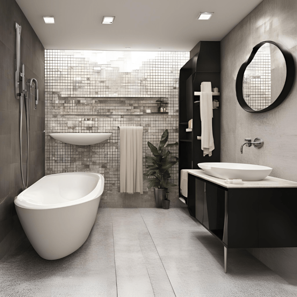 - Stone: Incorporate natural stone in countertops, shower floors, or decorative pieces.
