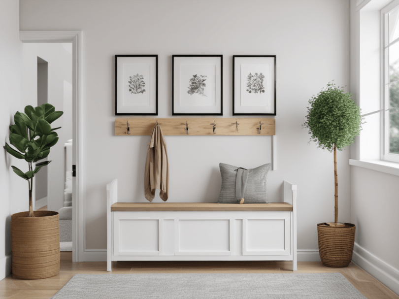 The bench itself serves multiple purposes. It’s a convenient spot to sit while putting on or taking off shoes, making it practical for daily use. Additionally, the bench provides extra seating when guests arrive, seamlessly blending into your living space.