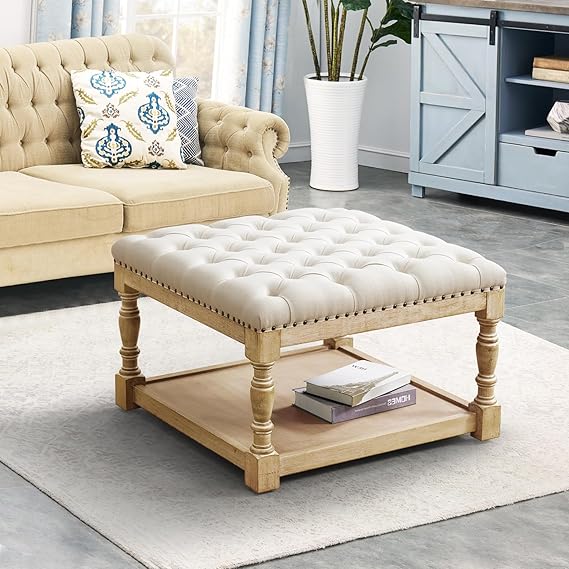 MERITLIFE Large Square Ottoman Coffee Table with Solid Wood Legs https://amzn.to/47joV9f