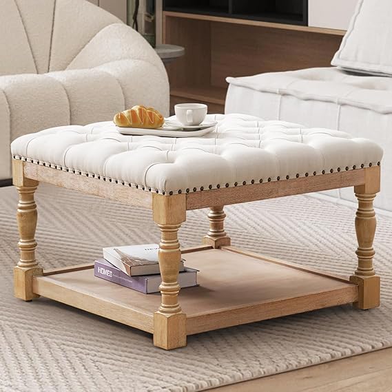MERITLIFE Large Square Ottoman Coffee Table with Solid Wood Legs https://amzn.to/47joV9f