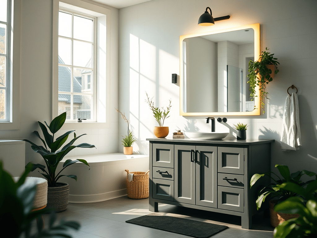 Adding plants can instantly make your bathroom feel more serene. Choose low-maintenance plants like succulents, snake plants, or pothos, which thrive in humid environments. You can even hang small planters from the ceiling for a modern touch.