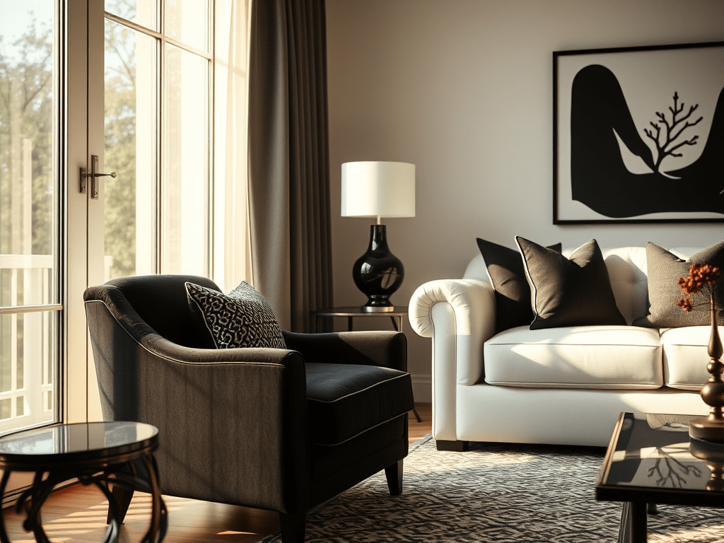 Black is inherently sophisticated and exudes elegance. When used thoughtfully, it can create a refined, modern atmosphere in any room. Whether it’s a black velvet armchair, a dramatic light fixture, or even a black accent wall, this color adds a timeless charm to your space.