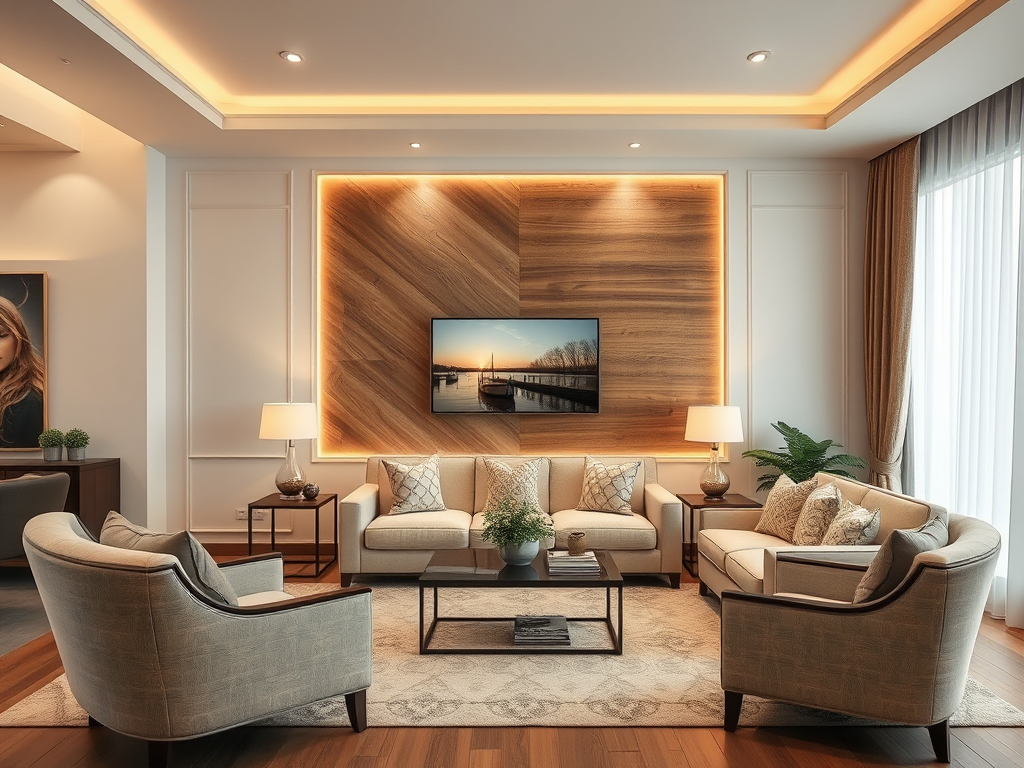 - Living Room – Behind the sofa or TV to draw attention to the central gathering area.