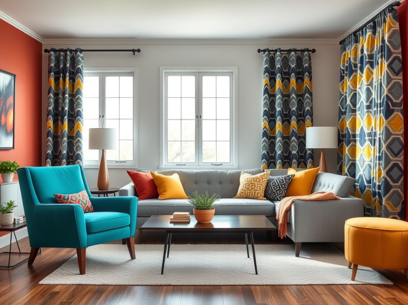 These patterned curtains mix blue, yellow, and gray tones—perfect for pulling your color palette together without feeling forced.