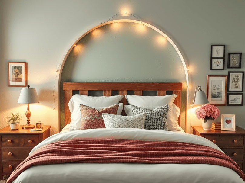 - Painted Headboard in a bold arch or geometric shape.