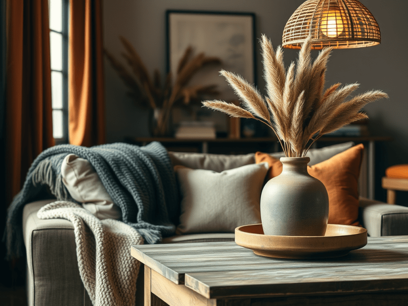 Wood, stone, and ceramic pieces are popular this season, paired with dried botanicals like pampas grass and eucalyptus. These natural accents create warmth without overwhelming your space.