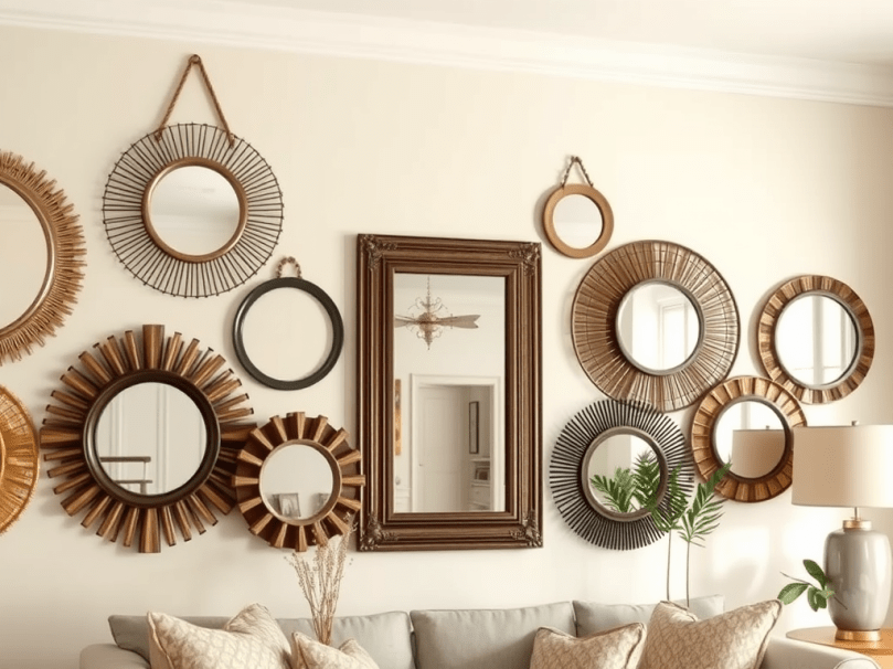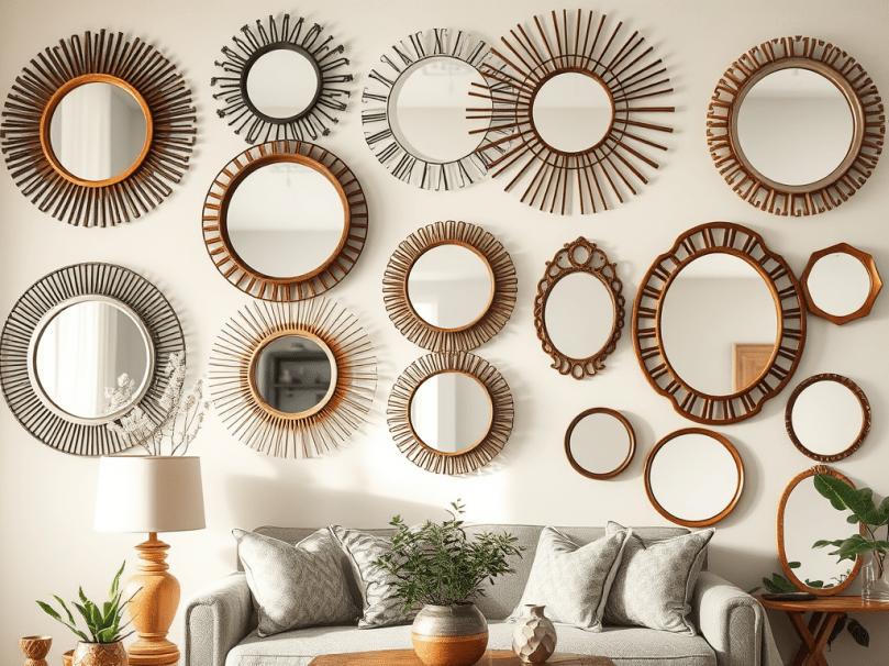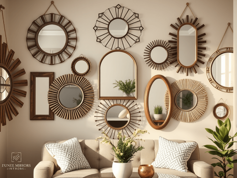 - Decorative Accent Mirrors: Unique shapes—sunburst, geometric, or abstract—that double as wall art.