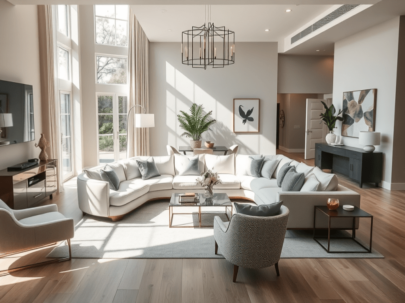 In large spaces, use furniture to define zones. A big sectional can anchor a living area, while a console table or rug can separate a dining or reading nook. - Balance Heights and Visual Weight