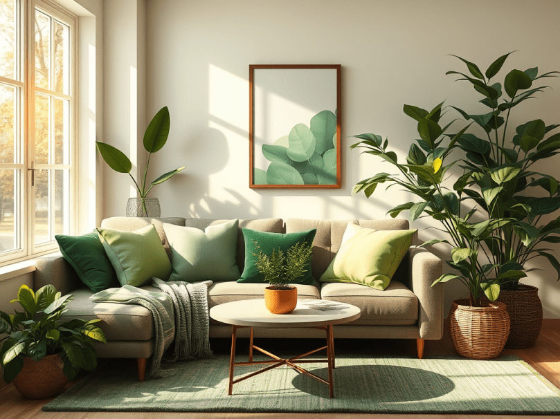 - Plants: The most natural form of green décor—plants bring color and life instantly.