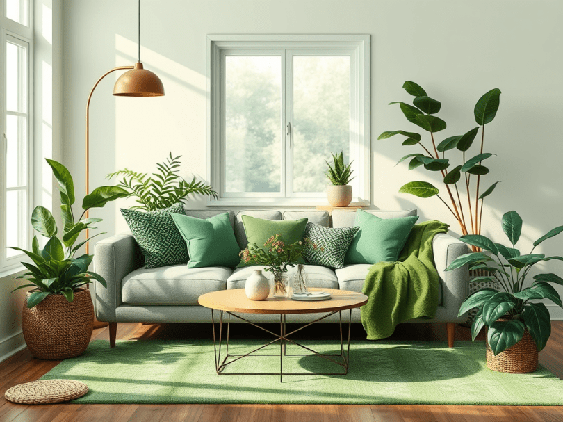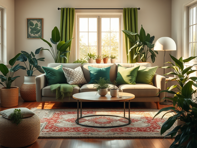 - Decor: Pillows, vases, throws, art, and rugs are perfect ways to add green without commitment.