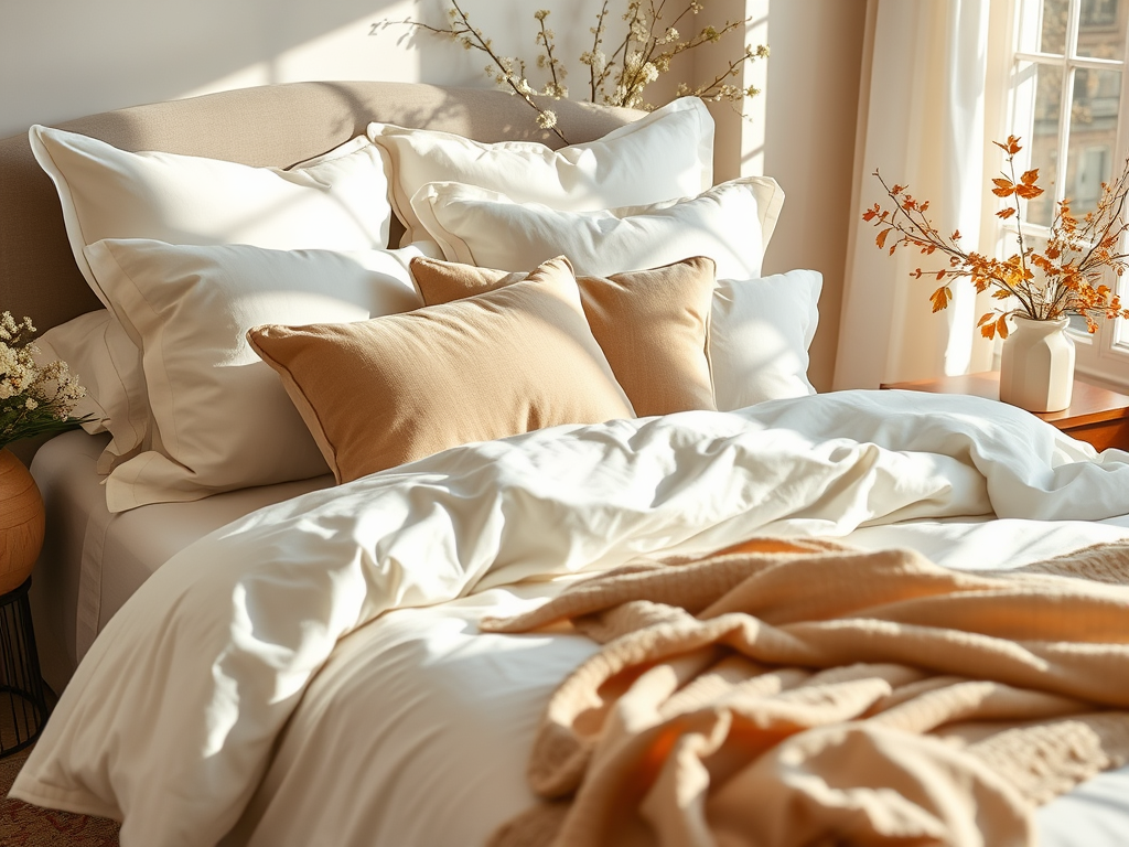 One fall evening, a woman decides she’s tired of her bright summer bedding. She pulls out a warm, cozy set—deep browns, soft creams, maybe even a chunky knit throw. Suddenly, her room feels like a completely different space.