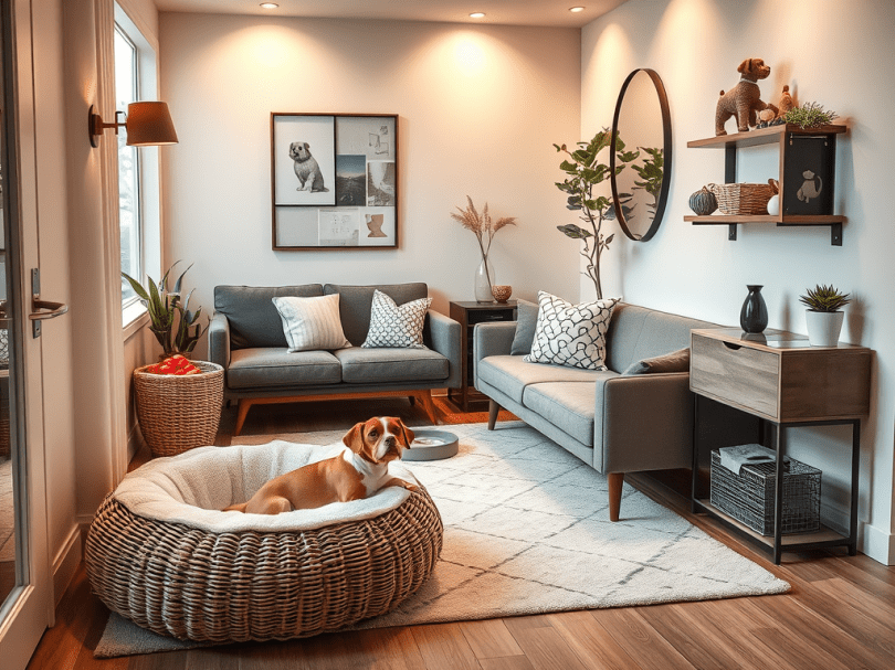Instead of hiding your pet’s space, integrate it. Choose bowls and beds that match your color scheme. Frame a photo of your pet and include it in your gallery wall. Lay a washable rug under their bed that complements your textiles.