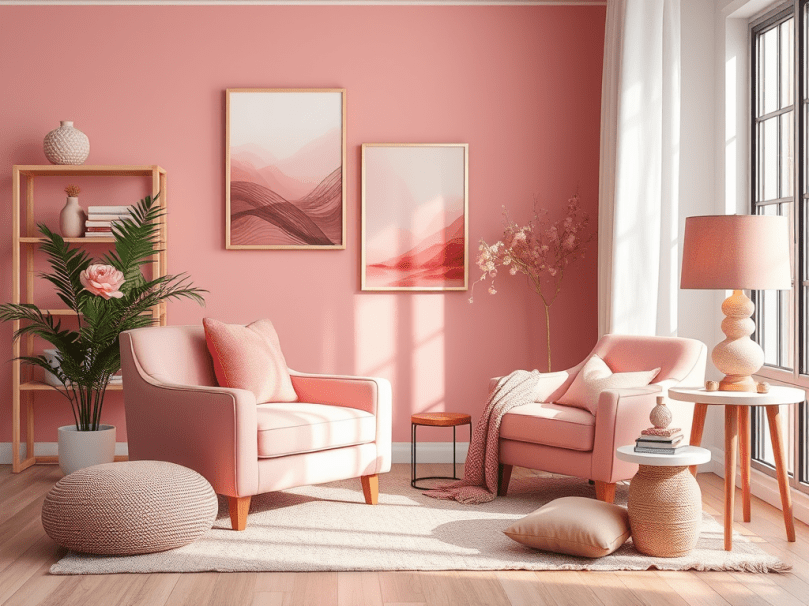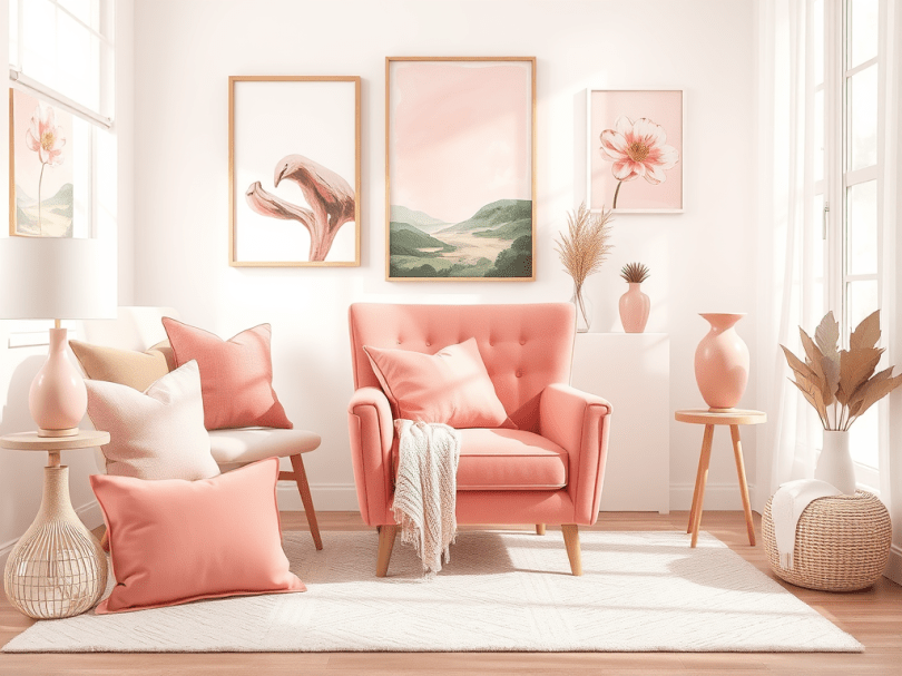 Throw pillows, vases, candles, and artwork are an easy, low-commitment way to introduce pink. A soft pink throw blanket over a neutral sofa instantly adds warmth and charm without dominating the space.