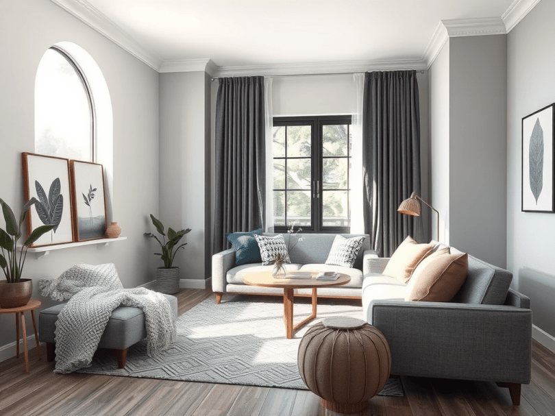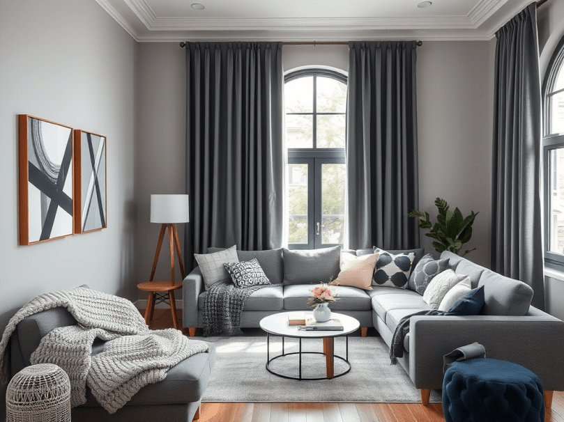 Mix different shades of gray in one room—light gray walls, a medium gray sofa, and dark gray curtains—to create depth and interest. - Use Texture to Add Warmth