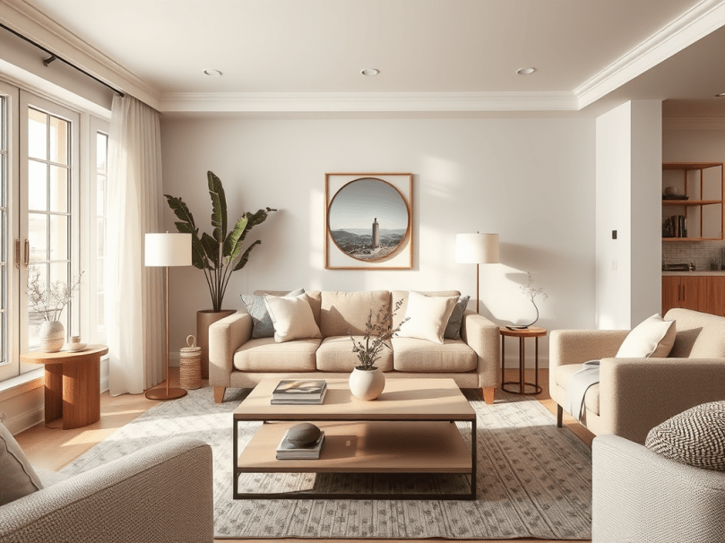 While neutrals are the star, adding small pops of color can enhance the overall look. Introduce muted blues, greens, or terracotta tones through accessories like vases, artwork, or decorative pillows. These subtle accents will bring warmth and personality without overwhelming the space.