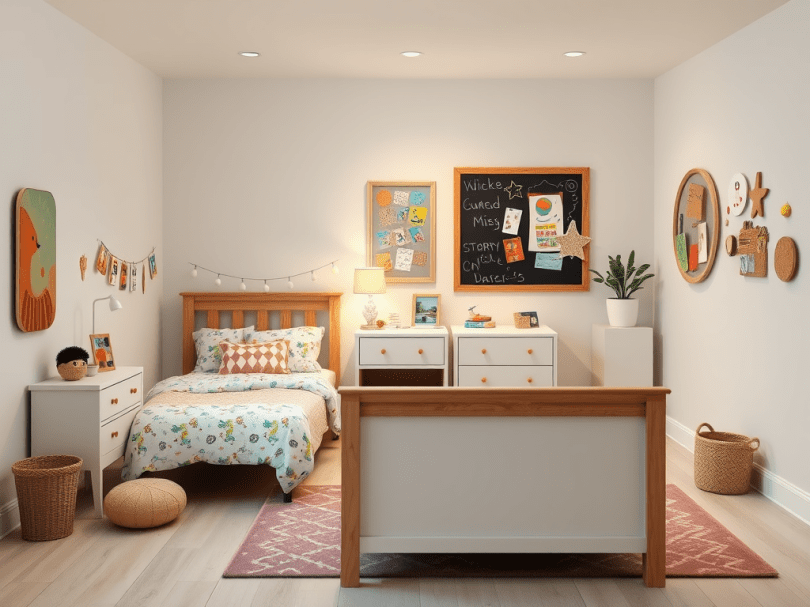 Give your child space to explore what they love. A chalkboard wall, pinboard, or magnetic display lets them show off their art, favorite characters, or new hobbies as they grow.