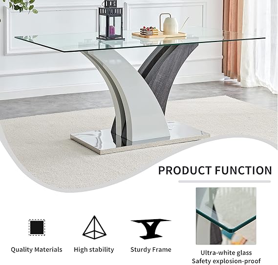 63″ Modern Dining Table Set for 6, Glass Dining Table with 6 Leather Chairs,0.39″ Tempered Glass Tabletop, MDF Base, Kitchen Furniture, Suitable for Living Room, Dining Room, Kitchen https://amzn.to/3xWbP4h