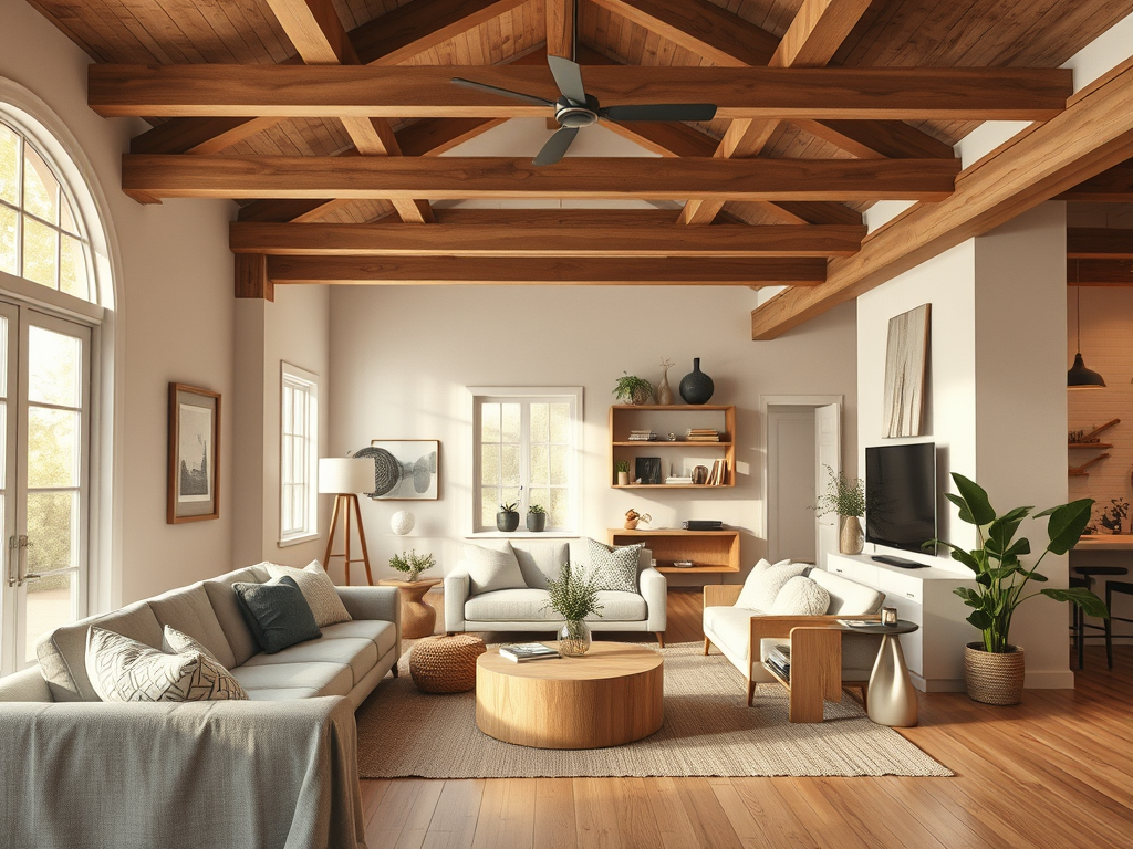 - Flooring should be natural wood or wood-look options; wide planks are particularly fitting.
