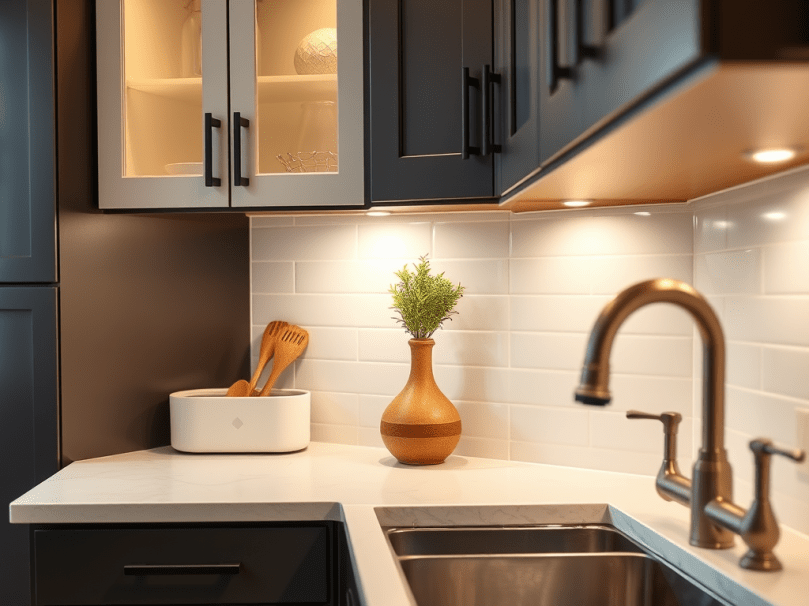 Lighting makes a huge difference in how your kitchen feels. Replace outdated fixtures with something fresh and modern—like a statement pendant light over your island or under-cabinet LED strips for extra brightness while cooking.