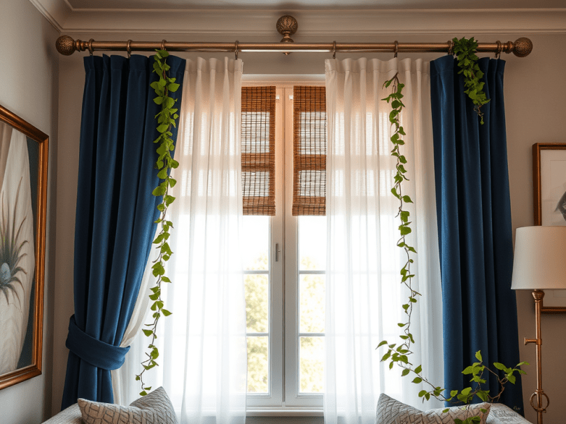 Gone are the days of one flat covering. Designers love layering shades with sheer curtains or drapes to add visual richness and flexible light control. (Budget Blinds)
