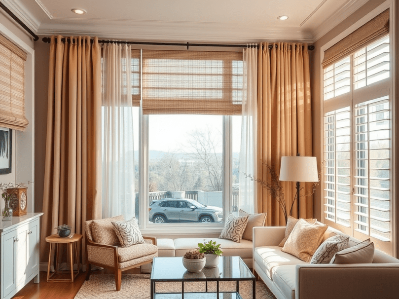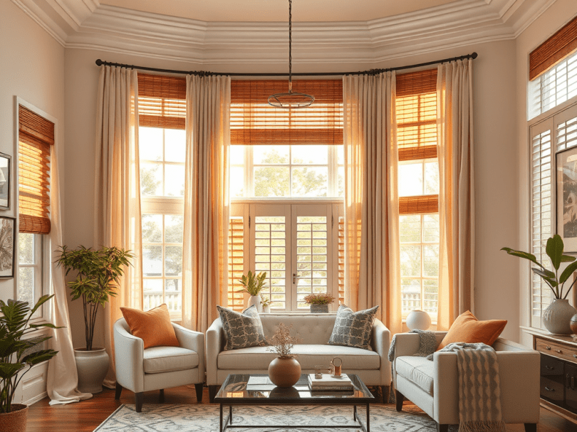 - Bamboo Woven Shades – Natural, textured, sustainable option.