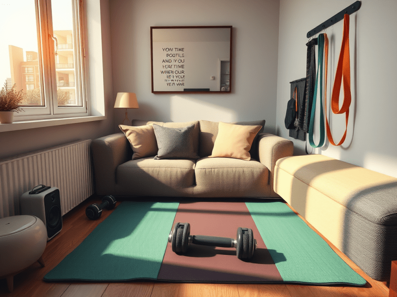 Even if you live in a small apartment or have limited open space, you can still define a “workout zone.” Choose an area that gives you just enough room to move comfortably — maybe the corner of your living room, a spot beside your bed, or even an open hallway.